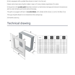 The grille is equipped with built-in movable blinds, with a knob which allows to control the flow of air.