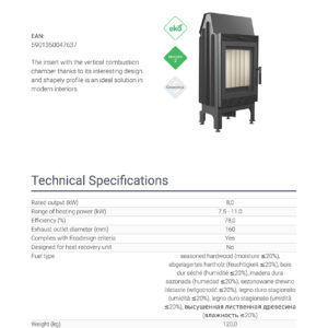 Efficient burning process & maintaining of temperature to keep the warmth for longer thanks to lining of combustion chamber with TERMOTEC – heat accumulating material which raises the temperature in the combustion chamber.