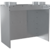 A fireplace manifold is used for a hot air distribution gravity system. It is made of 0.5mm thick galvanized sheet metal and equipped with 4 outlet ports.