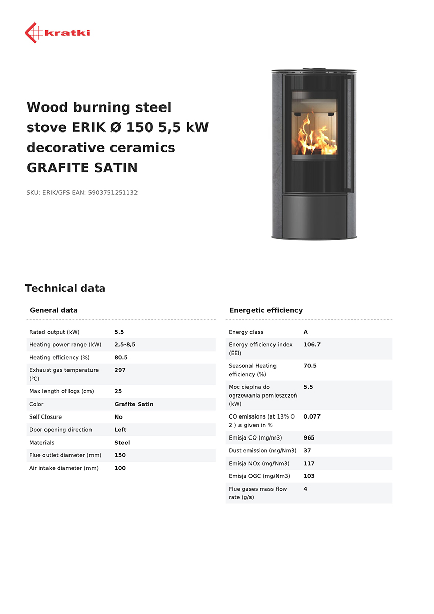 KRATKI ERIK/GFS (GRAFITE SATIN) 5,5KW (40-60M2) ΕΝΕΡΓΕΙΑΚΗ ΣΟΜΠΑ ΞΥΛΟΥ ΑΠΟ ΧΑΛΥΒΑ ΜΕ ΛΕΥΚΑ ΚΕΡΑΜΙΚΑ TERMOTEC