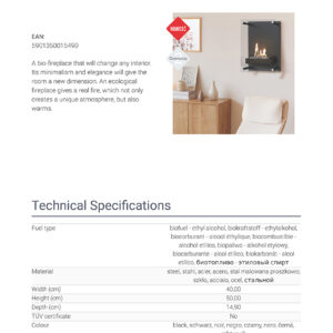We’re all about ecology! Buying our bio-fireplace you care about the environment. You do not contribute to the formation of smog. All this is due to the fact that the products of biofuel combustion are only: heat, water vapour and a negligible amount of carbon dioxide (as in the air exhaled by us).