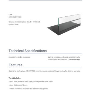 Glazing for biofireplace JULIET 1100, which increases usage safety, particulary for children and pets.