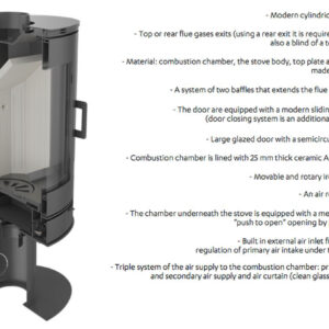 Efficient burning process & maintaining of temperature to keep the warmth for longer thanks to lining of combustion chamber with TERMOTEC – heat accumulating material which raises the temperature in the combustion chamber.