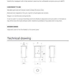 It can be used in a various mounting conditions thanks to adjustable exhaust outlet: on the back or top of the stove (for back exhaust outlet installation purchase of top plate cover is required).
