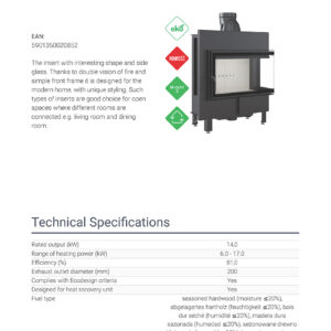 The insert with interesting shape and side glass. Thanks to double vision of fire and simple front frame it is designed for the modern home, with unique styling. Such types of inserts are good choice for open spaces where different rooms are connected e.g. living room and dining room. Thanks to specially profiled floor plate the insert can fit bigger volume of wood. Modern solutions used in this insert guarantee energy saving and cause that the service and cleaning are trouble-free.