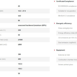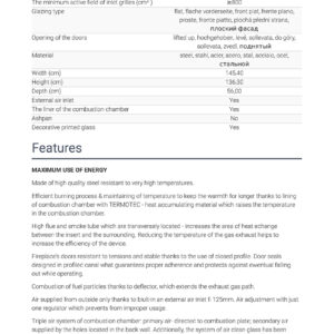Efficient burning process & maintaining of temperature to keep the warmth for longer thanks to lining of combustion chamber with TERMOTEC – heat accumulating material which raises the temperature in the combustion chamber.