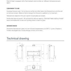 High flue and smoke tube which are transversely located – increases the area of heat echange between the insert and the surrounding. Reducing the temperature of the gas exhaust helps to increase the efficiency of the device.
