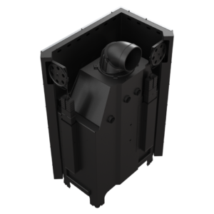 High flue and smoke tube which are transversely located – increases the area of heat echange between the insert and the surrounding. Reducing the temperature of the gas exhaust helps to increase the efficiency of the device.