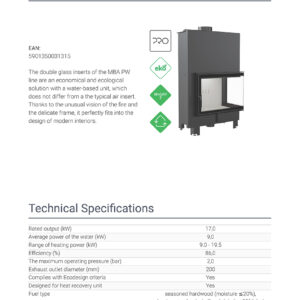 The double glass inserts of the MBA PW line are an economical and ecological solution with a water-based unit, which does not differ from a the typical air insert. Thanks to the unusual vision of the fire and the delicate frame, it perfectly fits into the design of modern interiors. This type of fireplace is often chosen for houses with open spaces , such as living rooms with dining areas.