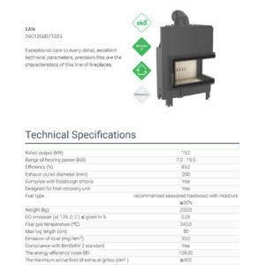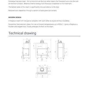 High flue and smoke tube which are transversely located – increases the area of heat echange between the insert and the surrounding. Reducing the temperature of the gas exhaust helps to increase the efficiency of the device.