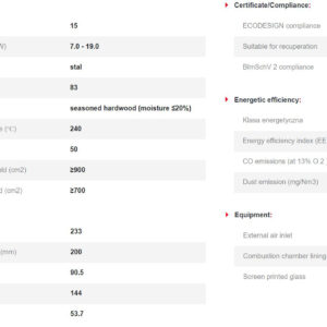 Efficient burning process & maintaining of temperature to keep the warmth for longer thanks to lining of combustion chamber with TERMOTEC – heat accumulating material which raises the temperature in the combustion chamber.