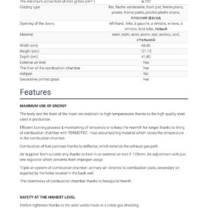 Efficient burning process & maintaining of temperature to keep the warmth for longer thanks to lining of combustion chamber with TERMOTEC – heat accumulating material which raises the temperature in the combustion chamber.