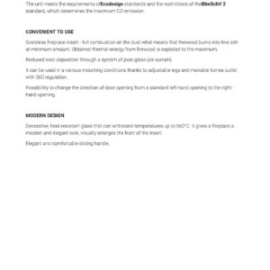 Grateless fireplace insert – full combustion on the dust what means that firewood burns into fine ash at minimum amount. Obtained thermal energy from firewood is exploited to the maximum.