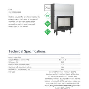Efficient burning process and maintaining of temperature to keep the warmth for longer thanks to lining of combustion chamber with TERMOTEC – heat accumulating material which raises the temperature in the combustion chamber.