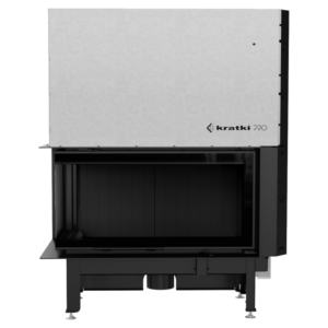 Double door opening system – LIFT-UP (guillotine) and side opening. Lifted door makes loading of wood easier and machanism of side door opening allows to clean the glass.