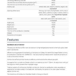Efficient burning process & maintaining of temperature to keep the warmth for longer thanks to lining of combustion chamber with TERMOTEC – heat accumulating material which raises the temperature in the combustion chamber.