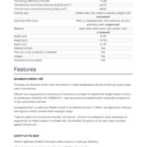 Efficient burning process & maintaining of temperature to keep the warmth for longer thanks to lining of combustion chamber with TERMOTEC – heat accumulating material which raises the temperature in the combustion chamber.