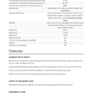 Maximum use of heat due to densely spaced radiators and the wall of the insert made of high quality cast iron with a thickness of 8 mm.