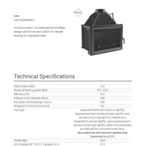 Classic front of insert is equipped with a heat-resistant ceramics that can withstand temperatures up to 660°C.