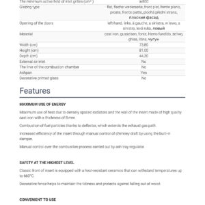 Maximum use of heat due to densely spaced radiators and the wall of the insert made of high quality cast iron with a thickness of 8 mm.