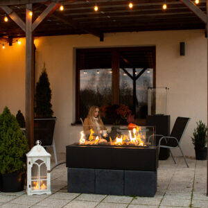 The PATIO Horizontal is a stylish gas heater that provides warmth and light wherever we want to create a unique and cosy atmosphere. Its unique feature is the fire visible from four sides. This makes it a unique gas patio or garden lamp.