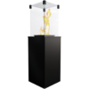 PATIO is powered by liquid gas from the cylinder hidden in the housing. Flames are enclosed in a glass cell which shields us from direct contact with fire. This allows you to admire the game of flames under full control. The lower part of the device housing is made of steel, shielded on three sides with glass panels in white. Thanks to this Patio is resistant to damage. The lower chamber of the device is protected against unauthorized opening by mounted lock in the door.