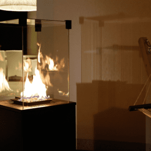 The mini patio is powered by liquid gas from a bottle that is hidden in the case. The flames are locked in a glass envelope that protects from direct contact with fire. This allows you to admire the magnificent flame set, all being entirely under control.