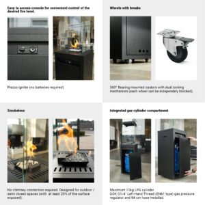 Fire in a second? With patio, it’s possible! A single click is enough to enjoy the heat and beauty of the flames. It is important to note that you can adjust and extinguish the flame at any time.