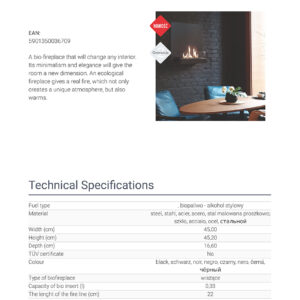 We’re all about ecology! Buying our bio-fireplace you care about the environment. You do not contribute to the formation of smog. All this is due to the fact that the products of biofuel combustion are only: heat, water vapour and a negligible amount of carbon dioxide (as in the air exhaled by us).
