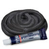 A graphite cord with adhesive is used to seal glass in fireplace inserts.