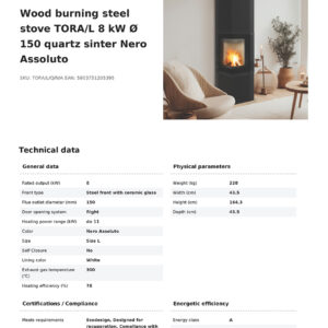 KRATKI TORA/L/Q/N/A ECODESIGN 8KW (50-70M2) ΕΝΕΡΓΕΙΑΚΗ ΣΟΜΠΑ ΞΥΛΟΥ ΑΠΟ ΧΑΛΥΒΑ ΜΕ ΛΕΥΚΑ ΚΕΡΑΜΙΚΑ TERMOTEC