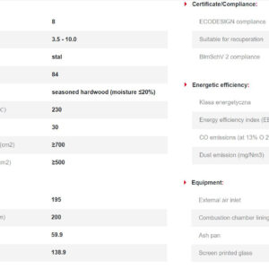 More efficient combustion and longer temperature maintenance is effect of TERMOTEC lining in combustion chamber, a heat accumulating material that increases the temperature in the furnace. In addition, its smooth, white surface looks impressive inside the fireplace.