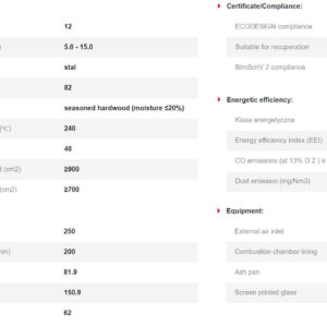 More efficient combustion and longer temperature maintenance is effect of TERMOTEC lining in combustion chamber, a heat accumulating material that increases the temperature in the furnace. In addition, its smooth, white surface looks impressive inside the fireplace.