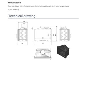 Frame and door of the fireplace made of steel intended to work at elevated temperatures.