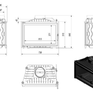 Ash drawer / ashtray, where the remains of burnt wood are gathered and grate for easy ash removal.