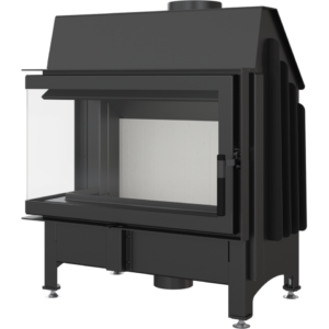 A fireplace insert with two panes compiled with each other at angles (without brackets).