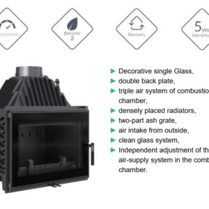 Due to the construction of the insert and the triple combustion chamber ventilation system, the insert meets the Ecodesign requirements. Moreover, the tight combustion chamber make that the isnert is perfect solution for homes with recuperators.