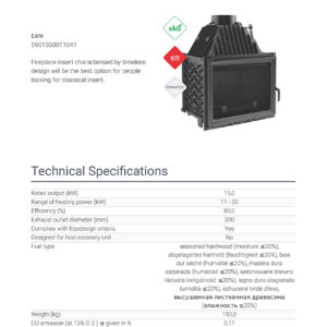 Classic front of insert is equipped with a heat-resistant ceramics that can withstand temperatures up to 660°C.